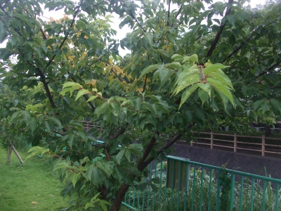 この木も昔はちっちゃかったけど、今はここまで大きくなった。この写真では分かりにくいが、色んな長さの枝が色んな角度に伸びているので、いつも相手をイメージするのに好都合なのだ。彼にはずっとお世話になっている。今度植物用のアンプル?でも御馳走しないとマズイな。