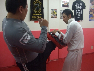 ここから皆でグルグル回ってミットやら何やら。受け返しはキックメインで。そんなこんなで良い時間になってしまったのでマス開始。RICKYが三脚でビデオ撮影しようとしたが、結局三脚ごと持って撮影してた。笑える。
