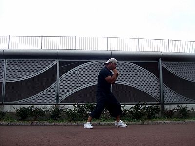 ストレッチしてから、ステップ~パンチのみ~キックルール~変な人の順番でシャドー。ここは足場が「咬み過ぎ」てしまうので、靴が壊れそうだ。もっとスルスルと動けるとこじゃないとダメだわ~。