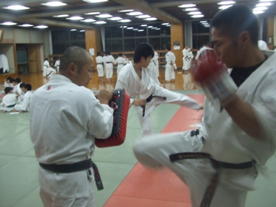 大荷物持ってテクテク。Kが玄関まで迎えに来てくれた。今日はOTマー君と仁王様しかいないらしい。トイレに行ってロッカーで着替えてると、フルコン黒帯のYDさんとトロルが到着。丁度Kと女子格闘家の恐ろしさを話してたらYDさんが「それって女子の話?」「そうです。一緒にやってる人に凄い人が居るんですよ。」