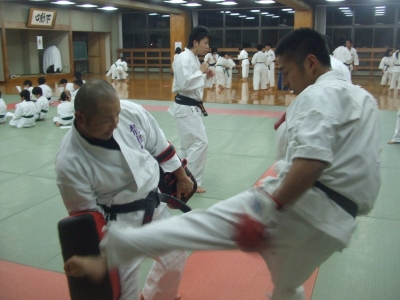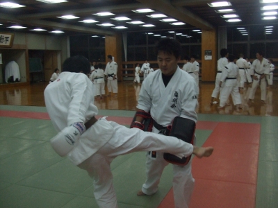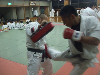 俺はKに持ってもらう。いつものロー何発、ミドル何発みたいなのよりもキツイキツイ!3分間蹴りっ放し、しかも相手の指示に従ってだからね。もうフラフラ。足攣りそうだったわ。