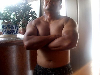 モンゴル相撲の力士みたいな体だな。もっとシェイプしたいけど食欲に勝てない・・。