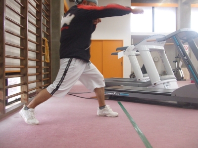 鏡の前には誰も居ないのでシャドー。丁度バーベル美人さんが来たので「何かやってらっしゃるんですか?」と聞いてみる。エアロビやアクアビクスのインストラクターをやってたそうだ。いやらしい意味ではなくて「良い体」してる。今流行の細マッチョながら、胸と尻はプリッとしている。