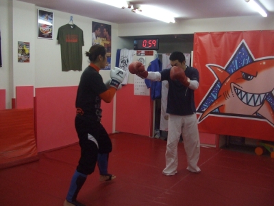 パンチのディフェンスを皆で練習。丁度6人なので3組に分かれて。俺はRICKYに先週の続きを教えたかったので色々と。ずっと俺がやってるディフェンス法を伝授。簡単に言えば3つの防御壁を使う。先ずは前手、俺はこれが一番重要だと思う。これで防ぎきれなかったら奥手、それでもダメなら上体の動きやステップを使う。