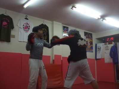 既に集中力が切れているYKさんとRICKYは終了。KH君はパンチを煮詰める。ここでもTYさんが大活躍。あの重いパンチをバシバシ受けまくる。凄いわ。