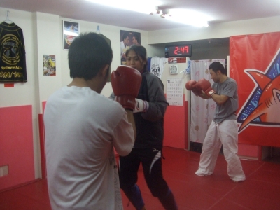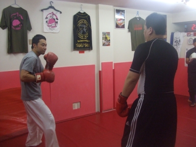 YKさんとDAI君。どうもDAI君の動きが尋常じゃない。練習後に聞いたら最大手老舗フルコン空手で、中高生の時に全日本で優勝したらしい。これは物凄いレベル。なんだかんだで凄い人が集まるなぁ。