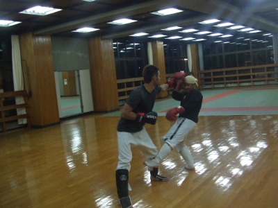 続いてキックミット。仁王様が蹴り方を空手式からムエタイ式に変えたので破壊力が激増。脛を全部ぶつけて来るのでヤバイ。仁王様は最近DVDを見まくって色々勉強している。こういう向上心が四十路にして成長する理由のひとつだ。