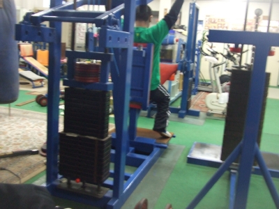 既にショルダープレスのマシンはMAX重量。コイツ相当地力あるな。1年で追い越されるわ。