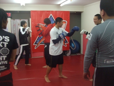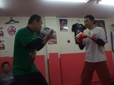 YKさんとOBさんがアップ中。少し遅れてRICKYも到着。俺はOBさんとYKさんのミット持ち。OBさんのパンチは持ってて楽しいなぁ。レスポンスも精度も良いからね。