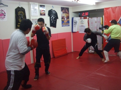 皆で適当にミット。グルグル回った後に目慣らし。姉さんと組む人はボクシングルールで。何度も書くがこれはこれで良い練習になる。一通りやってからマススパー。相変わらずTKYは腐った死体状態、Oちゃんは原一平さんだ。