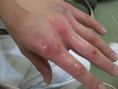 硬いSS(スーパーセーフ)を叩き続けた左拳は腫れ上がっている・・。だってM塾の拳サポ、小さくて薄いんだもん。って俺の事じゃないぞ!