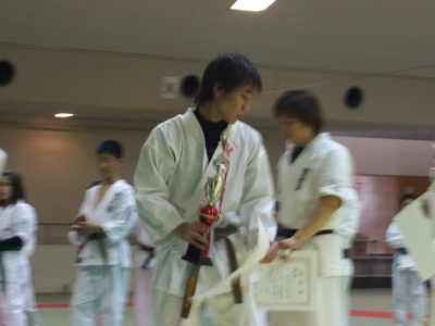 黒帯の部の決勝はOTマー君を沈めた人がミドルからバックブローでダウンをとって完勝!やっぱあの人強いな。マー君も最後に無茶して突っ込まなきゃなぁ・・ま、しゃあない。
