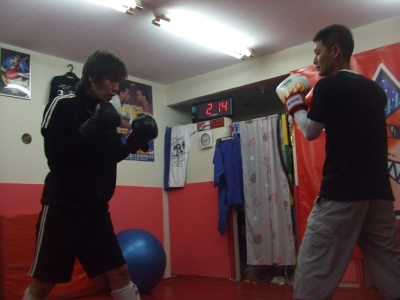 皆もミットでグルグル。暫くしてから柔術会員のSDさんが顔を出す。間違えて来たと思って「土日は打撃なんですよ~。」と言ったら「知ってます。」との事。嬉しいな。俺はSDさんに基本を教える。よっちゃん、YKさん、YGさんはマス。