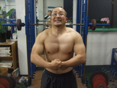 この日はトレ中の写真を撮るのを忘れてしまった。筋肉チェックのつもりでパチリ。TKYに撮ってもらう。先ずは広背筋を撮ってもらう。「TKY、頭頂部の薄さが分からないように撮ってくれ。」とお願いしておく。