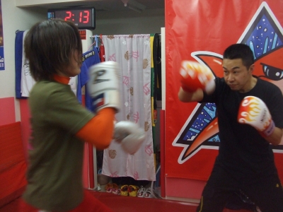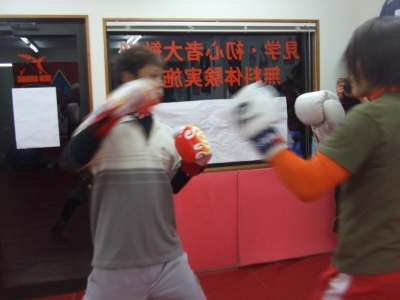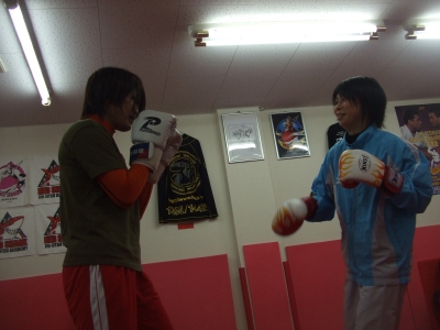 これはKH君と。数ラウンドやってたが1度KH君のボディストレートが炸裂して焦る。直前に俺と練習したコンビネーション。これ当たるんだよね~。すぐに出来るKH君が凄い。大体今まで俺が教えて来た人は言う事を聞かないので2~3年かかる(よっちゃん&RIKCY参照)。