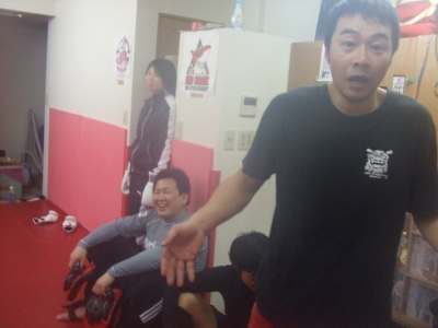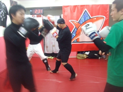 余りの熱気に赤鮫内は高温多湿。これはダイエット目的の俺とYKさんが暖房をガンガンにかけてるせいもあるのだが・・。これぐらいの人数だと、スペースとスタッフ人員を考えるとかなり厳しい。俺とRICKYはミット持ちっぱなしだし、YKさんはOちゃんやムーの指導で手一杯。