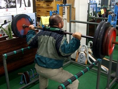 薄毛を晒してスクワット。上半身ばかりに目がいくが、足も適当にやってました。