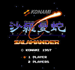 さてファミコン版サラマンダだ。中身が透けて見えるスケルトンカセットに胸躍らせた1人である。グラディウスと大きく異なる点はステージによって縦と横にスクロールする事。これは画期的だったがへクターもそうだったっけ。どっちが先かは知らんけど。あとは2人同時プレイが出来る事だろう。