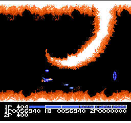 サラマンダと言えば炎だろう。この理不尽なプロミネンスに最初は皆焼かれたものだ。グラディウスより遥かに覚え要素の強いゲームだった。ファミコン版でこの烈火を見た時「ファミコンすげぇ!」と尊敬してしまった覚えがある。
