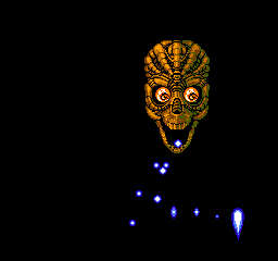 オリジナルボスの骸骨君。禿げたキン骨マンに見えなくもない。これは縦スクロールね。エミュのスナップショット機能だとフォースフィールドは光の塊にしか見えんな。