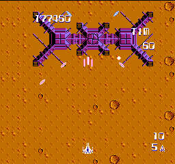 中ボスを倒して暫く行くとステージボス。ザナックのボスは全て地上物(だったはず)。敵弾は通常ショットで消せる物やサブウェポンで消せる物、全く消さない物がある。