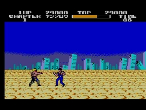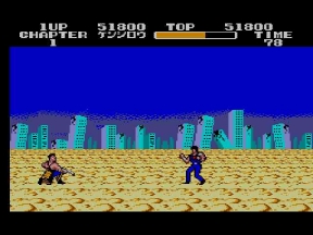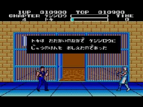 発売がほぼ同時期だった為、何かと比べられた2つの作品だが、全てにおいてでセガ版の圧勝だった。この時ばかりはファミコンユーザーも羨ましがり、マークⅢユーザーである事を誇りに思えたものだ。北斗の拳はファミコン天下に一矢報いた数少ないゲームだった。