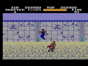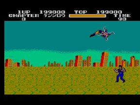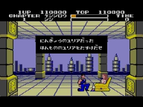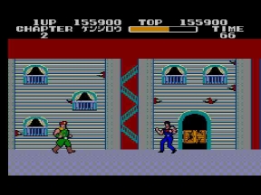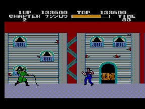 唐突に走ってくる怪しいオッサン発見!引ったくりかと思いきや、原作よりもサイズダウンされたウイグル獄長だった。ハードの性質上、中ボスは小さいのは仕方ないとこ。それでもマークⅢ版の歴史に残る再現度に変わりは無い。