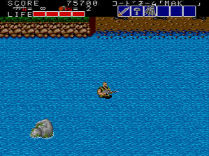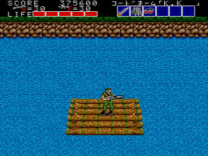 イカダでの強制スクロールステージ。どう考えても川の両岸から狙い撃ちされる。後先考えてないで先ず行動するのがならず部隊だ。